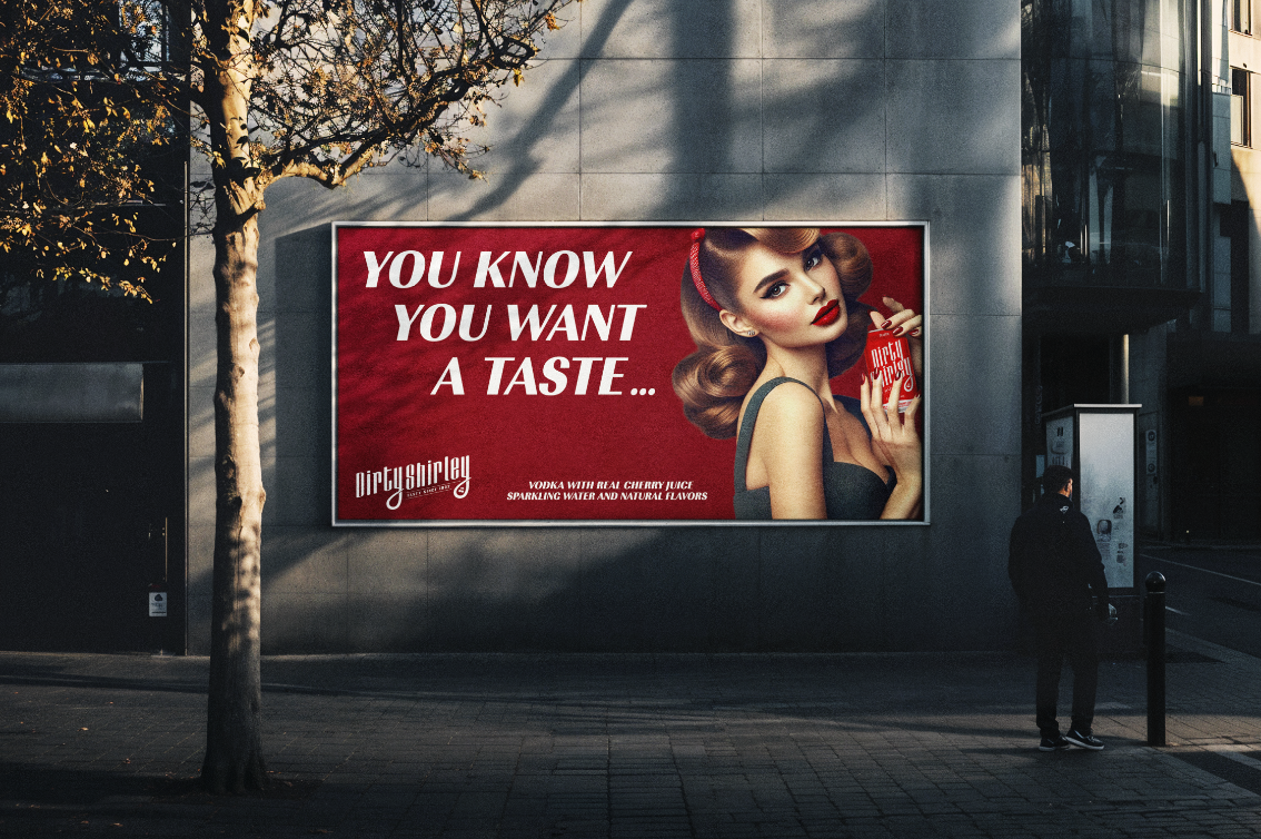 This campaign introduces Shirley a bold, fun, and seductive character who embodies the spirit of the famous cocktail, except now in a can! Shirley isn’t just a character; she’s a craving—magnetic personality who turns heads and stirs up excitement wherever she goes. With her mysterious charm and playful energy, she’s impossible to forget. This two-phase campaign invites you into her thrilling world, teasing her wild escapades and leaving you wanting more.